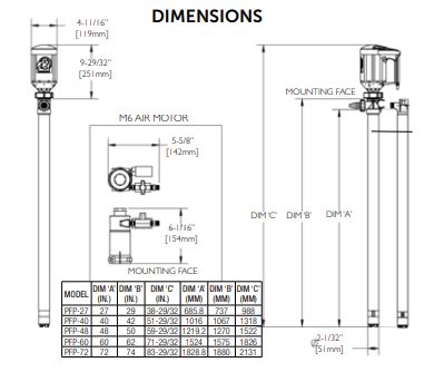 Thông số kỹ thuật bơm thùng phuy PFP40 :