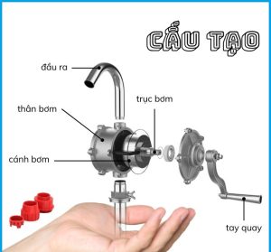 Cấu tạo máy bơm thùng phuy quay tay bao gồm các chi tiết: